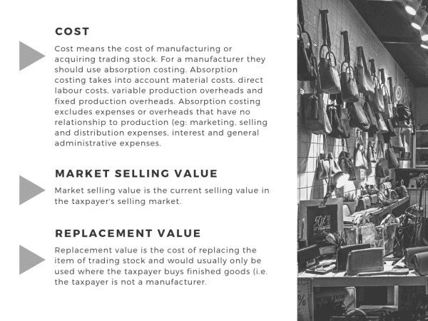 From a tax perspective, valuing stock for tax purposes can make a significant difference to your tax position. The ATO will accept the following valuation methods for stock: